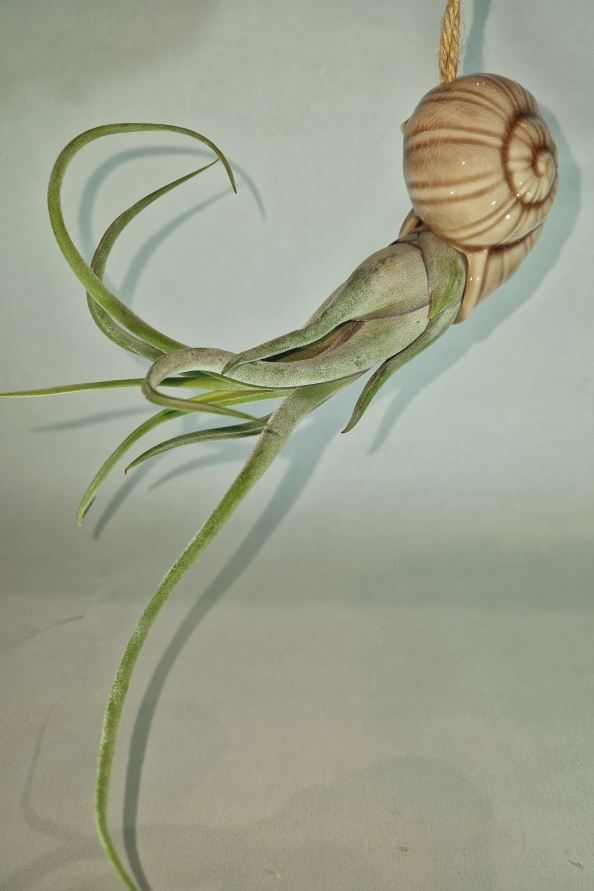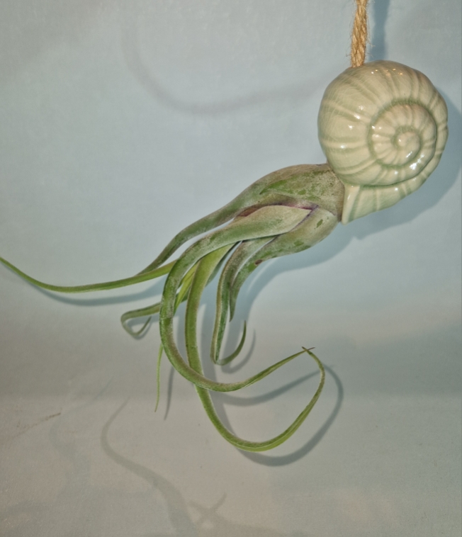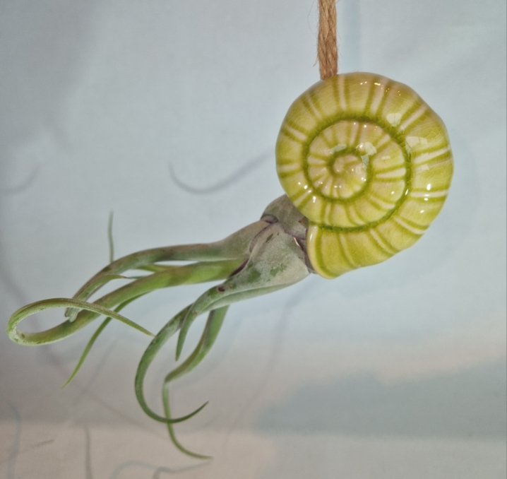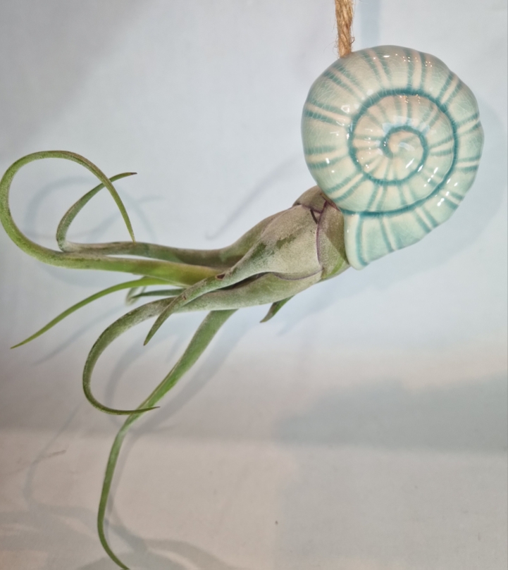 Suspension Céramique ‘ Nautile ‘ en céramique (diamètre de 6 cm ) avec tillandsia caput medusae